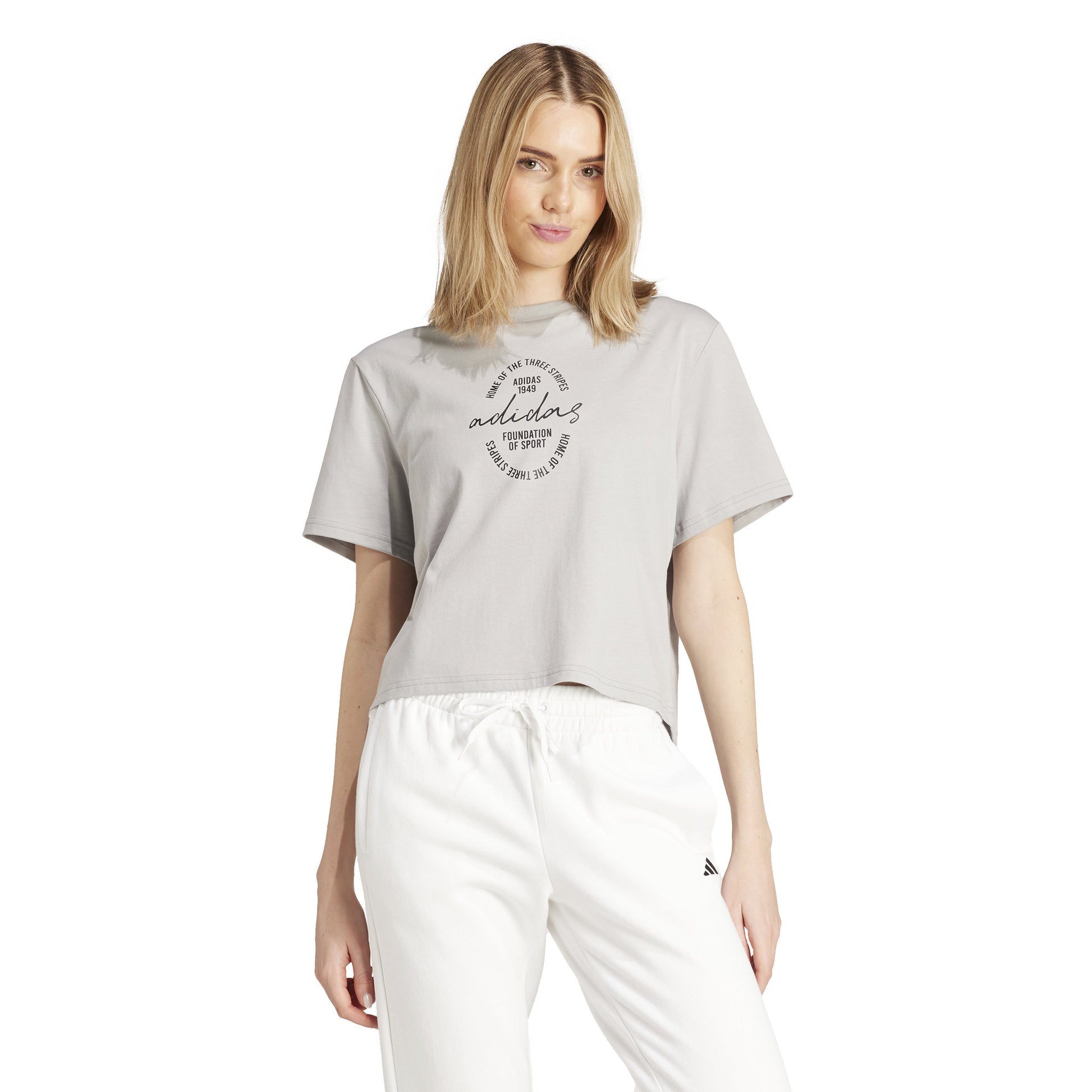 Signature style meets everyday ease in this lightweight adidas tee. Made from soft cotton jersey that feels like a well-worn favourite from the very first wear, it lets your style shine through without sacrificing comfort. Pair it with jeans for a laid-back weekend look or layer it under a jacket for an easy, put-together vibe. With a loose silhouette that flatters and a chic graphic that turns heads, this tee lets you show the world what you're all about.