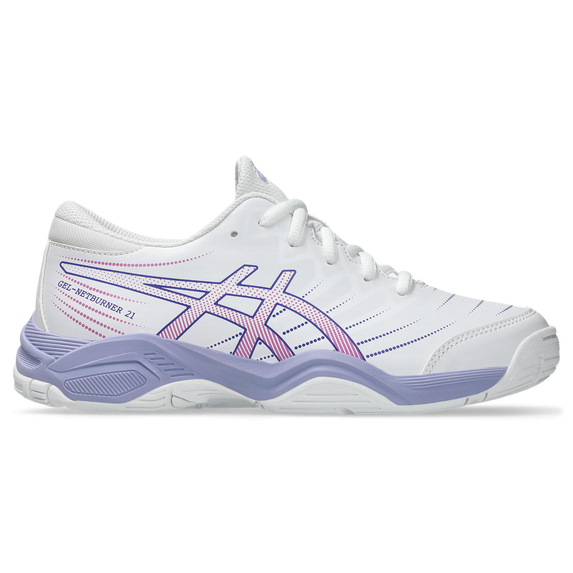 The GEL-NETBURNER™ 21 GS (Grade School) shoe provides stability and comfort for young feet. The GEL™ technology helps to absorb shock from high impact jumps and running, while the synthetic leather upper provides great durability.