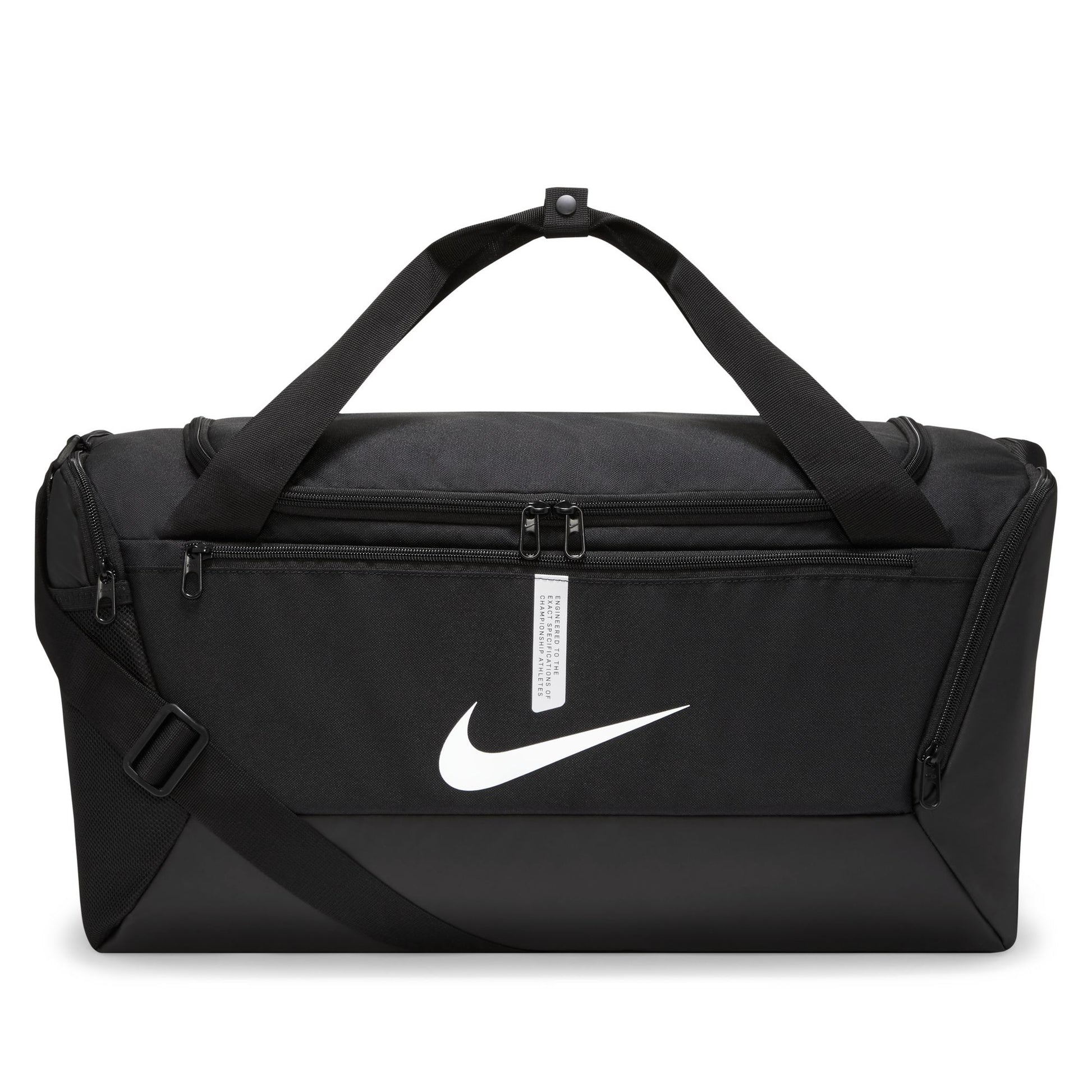 The Nike Academy Team Duffel Bag is a durable design built to keep you organized. Its main compartment opens to reveal spacious storage, while multiple straps let you comfortably carry your gear when you're on the go.