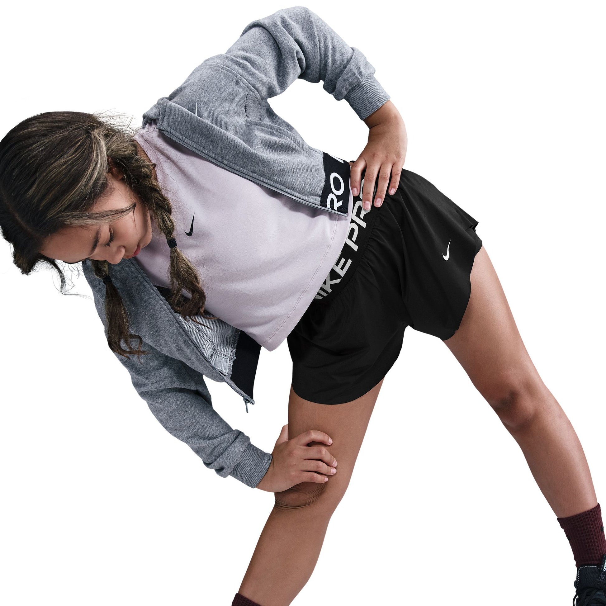 A wide jacquard elastic waistband offers a snug fit and roots you to heritage Nike Pro style.